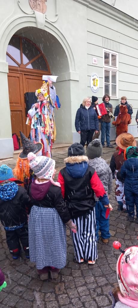 Děti z mateřské školy se zapojily do masopustního průvodu pořádaného základní školou.